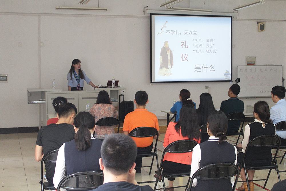 传承美仪,从心识礼。近日,学院工会组织举办了教师形象礼仪培训活动,聘请山东旅游职业学院辛冰老师担任主讲。铁道运输与财经管理系承办培训活动。辛冰给师生们阐述了开展礼仪教育的重要性,讲解了不同场合的不同礼仪知识,示范了在不同场合的不同礼仪姿态。通过培训,老师们对礼仪重要性有了更加深刻认识,对不同场合的礼仪规范了有了进一步的了解。
