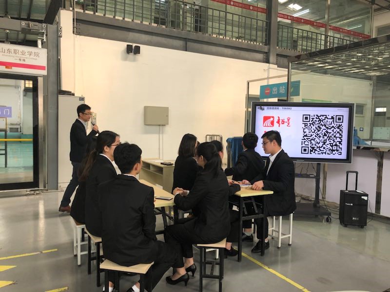 课堂上,曹老师通过移动设备投屏来实现移动化教学,利用移动终端的灵活性实时为大家在大屏幕上展示不同角度看到的设备细节和操作内容,通过手机直播手段引入车控室的远程操作画面,实现远程操作的可视化,并利用真实的屏蔽门操作辅以手机APP来推动教学环节的进行,为大家展示了先进的信息化教学实践课堂以及信息化教学示范。同学们身着工作服,分角色扮演各个岗位的工作人员也毫不含糊,表现出了良好的职业素质。