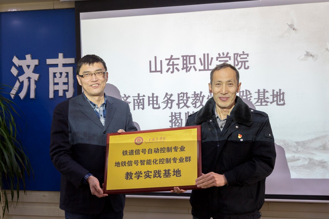 为进一步深化产教融合协同育人,搭建铁道及轨道交通行业校企深度融合的平台,近日,我院在济南电务段举行了教学实践基地、人才培养基地揭牌仪式。济南电务段段长李家国、书记张志强,学院党委副书记徐冬、铁道信号与信息工程系主任杨文虎出席揭牌活动。