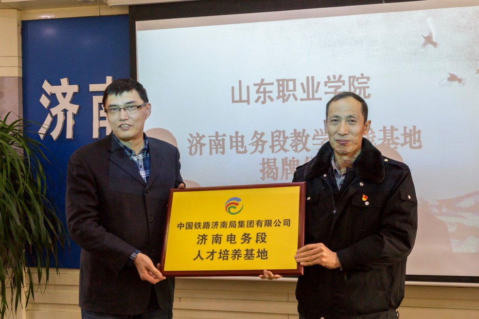 揭牌仪式上,济南电务段领导对我院毕业生表现给予了充分肯定,就铁道信号用人需求趋势、济南电务段生产组织特色、职工培训等作了详细介绍,双方就如何进行整建制顶岗实习进行了积极探讨。济南电务段表示,愿意为学院提供实习场地、设备、技术、师资方面的支持,完成认知实习和顶岗实习等教学实践活动。同时双方就校企共同开展人才培养、技术攻关、横向课题等方面进行了深入探讨。