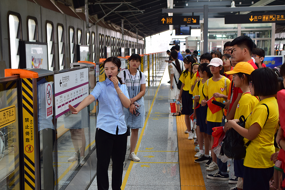轨道交通参观游览,增长见识向往未来。济南轨道交通是服务于济南市的城市轨道交通系统,其第一条线路于2019年4月1日正式商业运营。队员们携手小朋友走进济南地铁园博园站进行参观,在讲解员的带领下对济南地铁的特色之处进行了解。鱼腹形的站台建筑特色、预留站台的备用方案、融合极多的泉城设计、提高底蕴的象形文字、增强体验感的加宽座椅等,无一不在吸引着小朋友们的眼球。在搭乘园博园站到济南西站地铁期间,孩子们好奇的目光四处环绕,欣喜的心情跃于脸上。大家一致认为,看到小朋友们好奇求知的表情,不禁被带入到童真的氛围里,渴望拓宽知识面,为他们解答疑难问题。