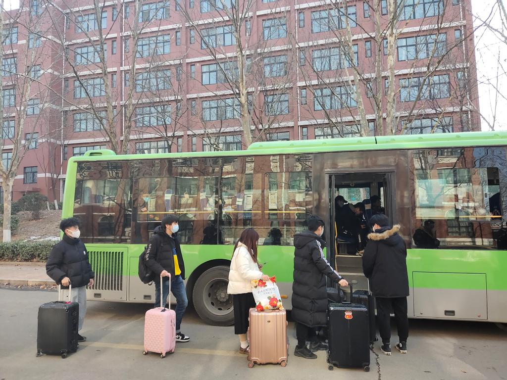 学校联合济南长途运输集团开通“校园回家直通车”,点对点将学生从学校送往济南站、济南东站、济南西站、长途客运站等地。1月10日至15日期间,共发车34班次,帮助1700余名学生“点对点”安全直达车站,最大程度地减少了途中密集人员的接触。开通绿色通道,方便家长“点对点”接学生回家,学生集中离校的几天,学生工作处联合安全保卫处、信息中心,通过“智慧山职”APP和定点定时入校申请单精准确认的方式,在做好疫情防控的同时,家长可快速方便的进入校园,接学生离校。
