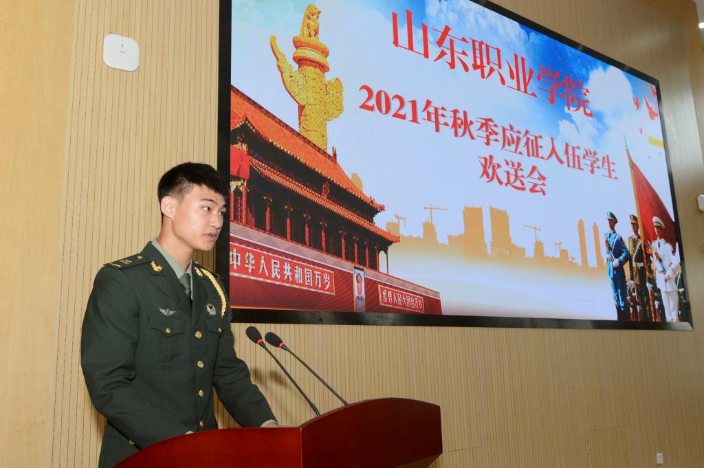 即将入伍学生代表张玉超表达了保家卫国的决心和信心。