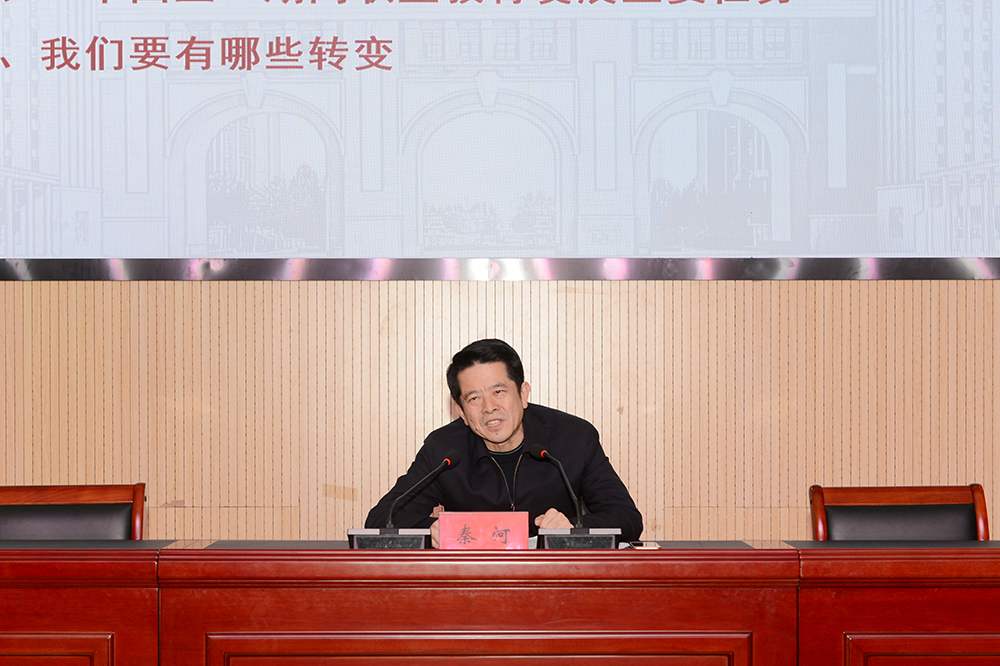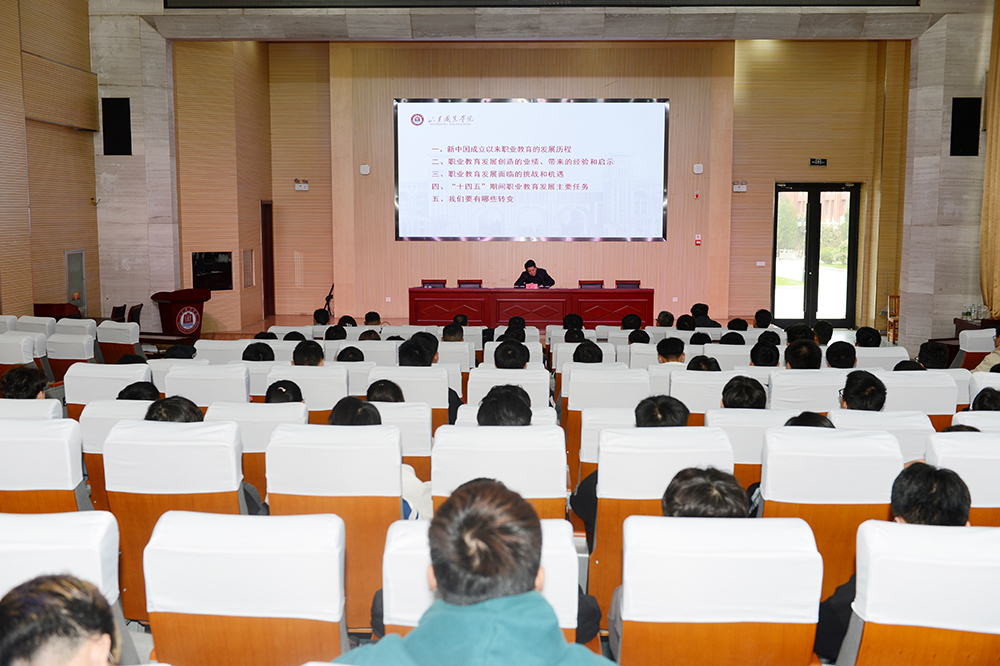 秦河结合讲授新中国成立以来我国职业教育的发展历程,回顾了学校自1951年建校,70年来不忘初心、牢记使命,始终与时代同呼吸、与祖国共命运,从社会主义初期建设发展,到改革开放后勇立潮头,再到进入新时代奋进一流的办学历程。通过总结职业教育发展创造的业绩、带来的经验和启示,分析职业教育发展面临的挑战和机遇,对学校“十四五”发展主要任务做了阐释讲解。