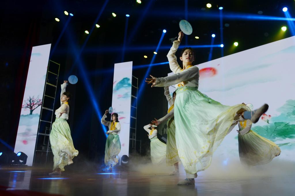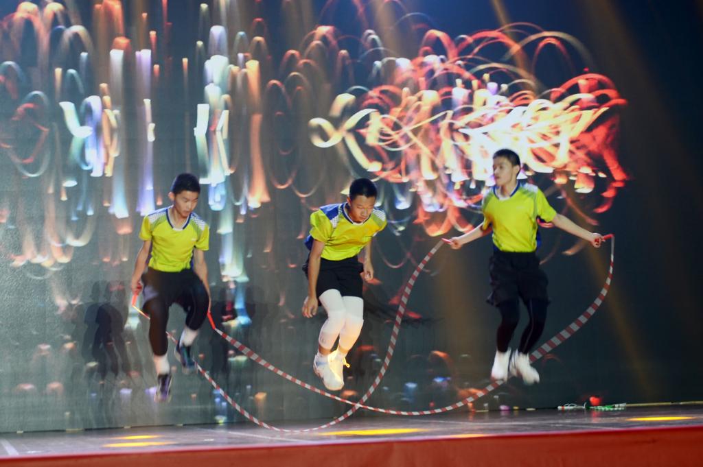 随后是师生精彩的文艺演出。歌曲《友谊地久天长》、歌舞《鸿雁》、花样跳绳、健美操等各类精彩节目轮番上演,异彩纷呈,气氛热烈,处处洋溢着师生青春的活力,观众的掌声、欢呼声、叫好声此起彼伏。