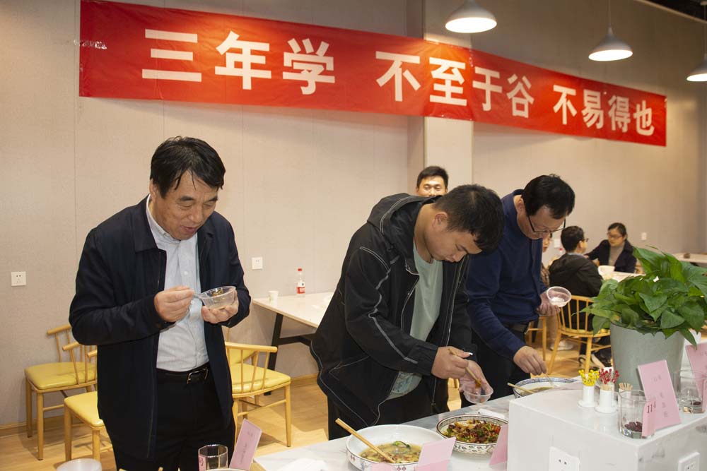 评委们认真品尝,从菜品的色泽、造型、味感、质感等方面进行了客观评分。最终,(尚博)菏泽羊肉汤、(中品)肉夹馍、(尚博)拔丝鸡蛋、(展飞)酸菜鱼、(尚博)毛血旺、(阳乐)风味茄子、(阳乐)芝士派、(利东)锅包肉、(中品)红烧带鱼、(利东)风味茄子获“十佳特色美食”称号。