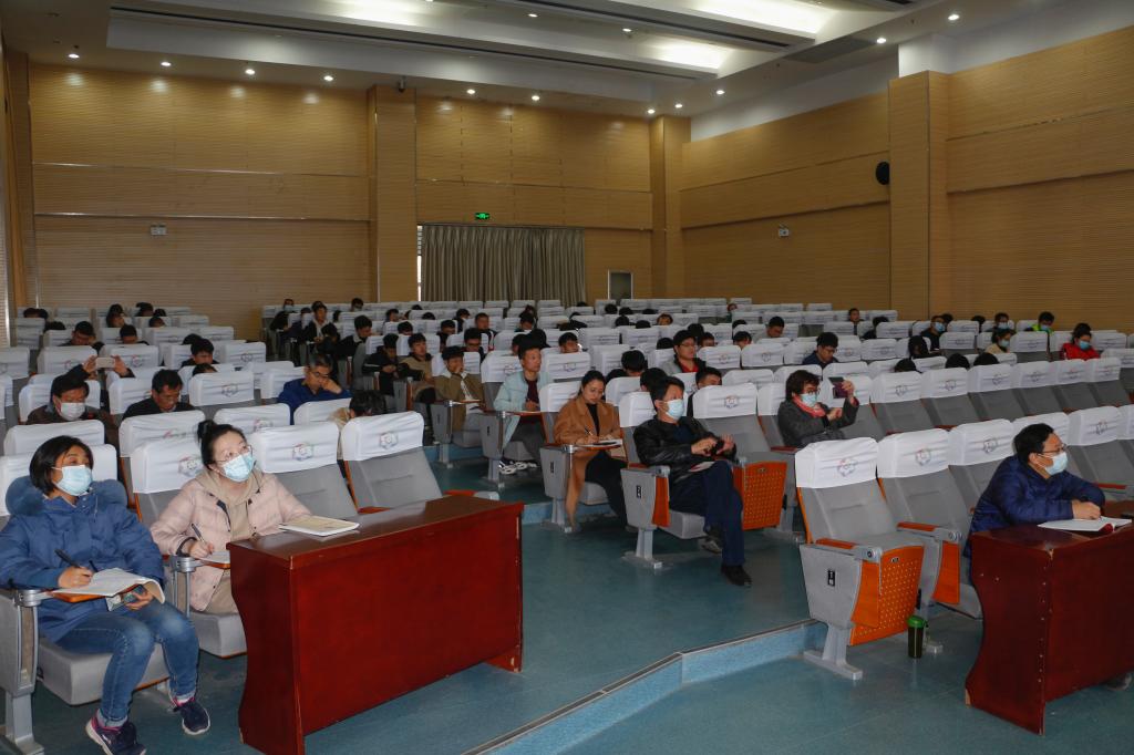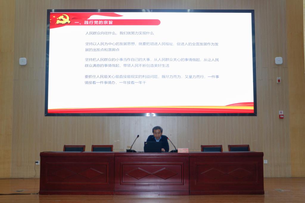11月12日,副院长郭鹏在图书行政楼东报告厅以《践行党的宗旨,提升服务质量》为题给选课制0042班同学讲授思政课,有关职能处室、二级学院党员听课。