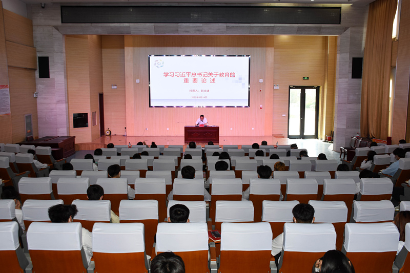 5月14日,党委副书记郭培谦在图书行政楼东报告厅以《学习习近平总书记关于教育的重要论述》为题给学校学生会、自律会学生干部讲授思政课。学生工作处、团委、书院的在校党员教师随堂听课。