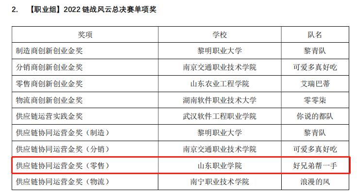 6月17日,由现代物流管理教研室主任吴向峰和刘浩老师带领的两支队伍参加了第五届中国大学生“链战风云”智慧供应链创新创业大赛,在307支高职参赛队伍中取得第十名的好成绩,两支队伍分别获得“金奖”一项、“银奖”一项,物流供应商运营单项金奖一项的好成绩。