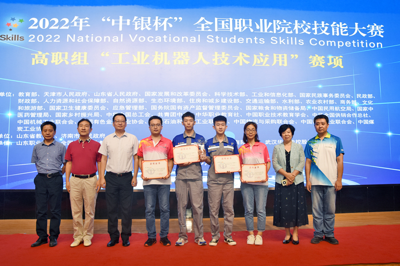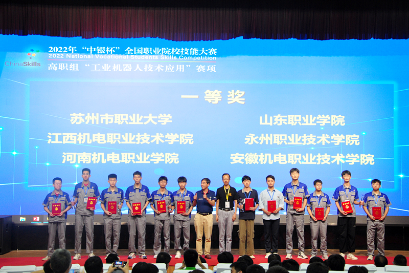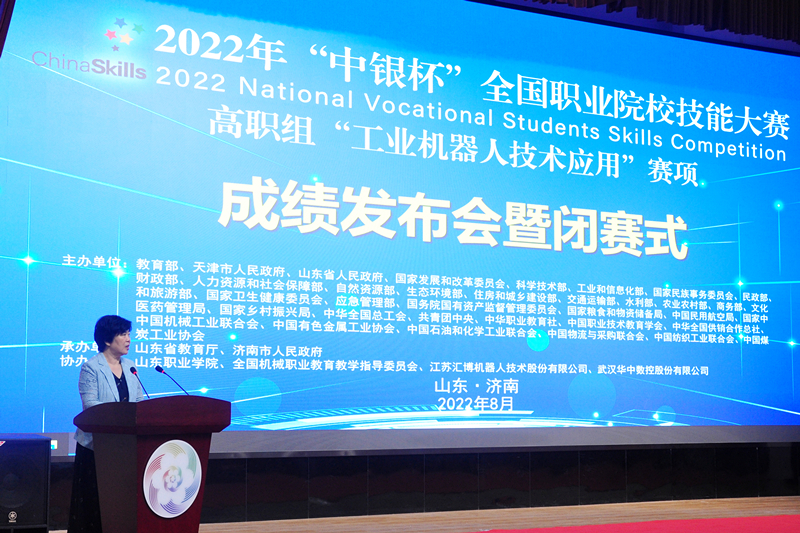 8月26日,2022年“中银杯”全国职业院校技能大赛高职组“工业机器人技术应用”赛项闭赛式在我校图书行政楼西报告厅举行。赛项专家组组长范进桢、赛项裁判长熊越东、赛项监督仲裁组长蒋晓刚,Beplay体育官方网站党委副书记郭培谦、副院长王绍军及监督仲裁组成员、专家组成员、合作企业领导等出席闭赛式。各参赛队领队、指导教师、参赛选手等参加闭赛式。学校副院长祝瑞花主持闭赛式。