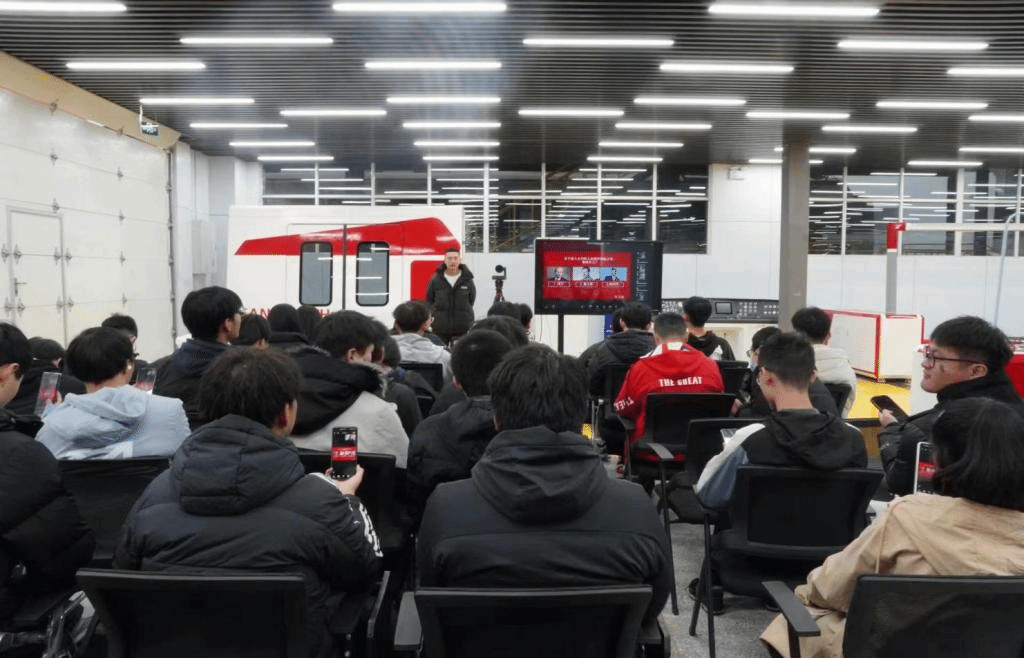竞答结束后,双方学子通过翻译软件,分组进行了交流。活动中,我校选手还在城轨协会布置的场地上进行了受电弓升降弓时间调节、受电弓电气试验以及受电弓碳滑板的更换操作演示。