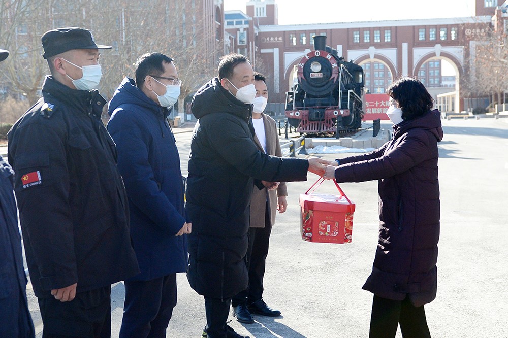 1月20日是腊月二十九。上午10时起,学校党委书记赵凤文、校长郭培谦深入校园监控中心、北校门值班室、校能源站、校医院、餐厅等地,看望慰问春节期间坚守工作岗位的干部职工。副校长郭鹏一同看望慰问。