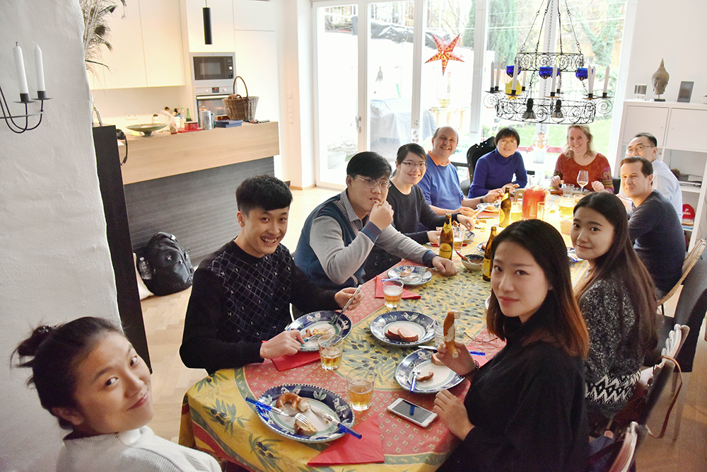 文化交流促感情,先进科技涨见识——文化交流是中德两校间的人文纽带。访问期间,学院师生代表团受邀到德方校长家参观并用餐,德方校长亲自演奏西方古典乐器,让师生们近距离感受古典艺术的魅力。周六、周日期间,学生带着小礼物一对一住进德方学生家庭,大家交流学习与生活,开展如猜大小、桌面足球等游戏活动,共同下厨做饭,品味特色美食,畅谈理想,憧憬未来。