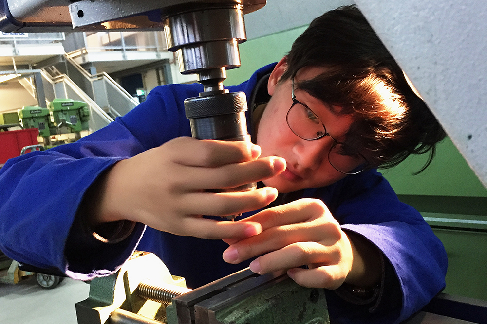 共同克服沟通关,携手完成新项目——《微型手动钻床制作》是此次师生访问交流期间的一项重要合作项目。尽管学院师生具有一定英语基础,但由于德方师生日常使用德语,且双方文化背景、思维习惯、表达方式等方面有不小差异,学习中使用的机器设备不同,所以在项目开始阶段,需要共同克服沟通障碍。