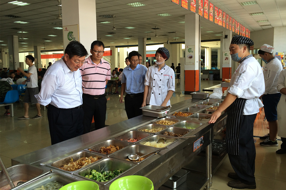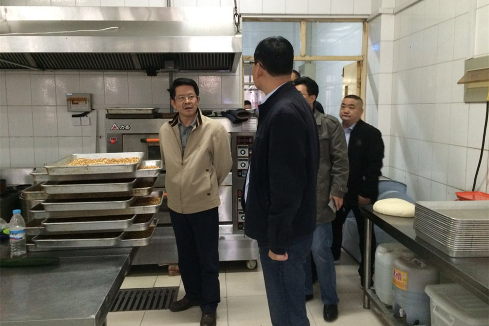 为做好十九大期间学院食品卫生安全工作,确保各项工作顺利进行,近期,学院党委书记王荣昌、院长秦河分别走进食堂开展安全卫生专项检查,副院长郭培谦及有关部门负责人陪同检查。