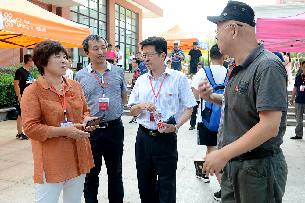 迎新当天,学院领导深入报到现场,为2017级新同学和学生家长送来美好祝福,亲切慰问坚守岗位的师生员工和广大志愿者,勉励大家要服务周到,耐心细致,让新生满意,让家长放心。
