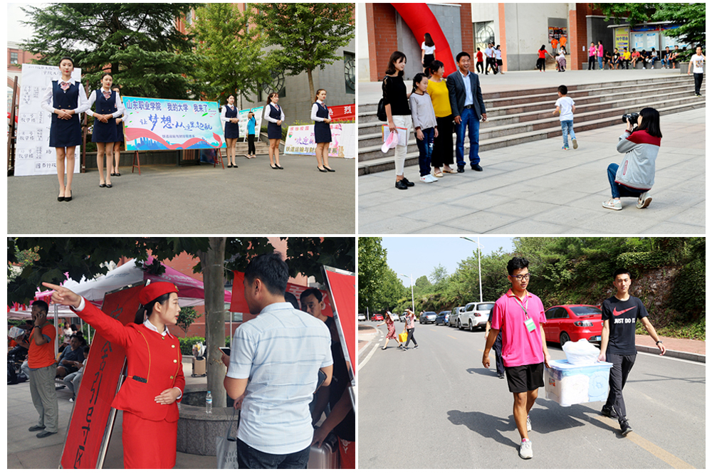为方便新生到校,学院在火车站设立了接待处,安排新生及家长安全便捷到达校区。在校门口,《新生报到流程图》《新生入学安全须知》《校园平面图》等一系列公示板方便新生及家长了解报到相关事宜。着装规范青年志愿者们热情周到地为新生提供引导、搬运行李等各项服务。