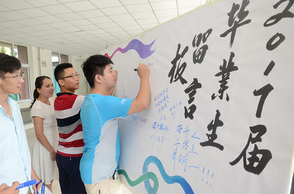 在教学楼前,毕业生同学们聚在一起,深入交谈,共叙往日情怀,笑谈憧憬未来。笑容分享喜悦,相拥表达不舍。毕业生们纷纷在留言板上写下心语,“岁月静好,时光依旧”“一别经年,不知何时再相见”“感谢老师,一路有您”“唯我电气,潮头勇立”,莘莘学子对母校、兄弟、姐妹的留恋,对未来的畅想,流露其中,让人动容。