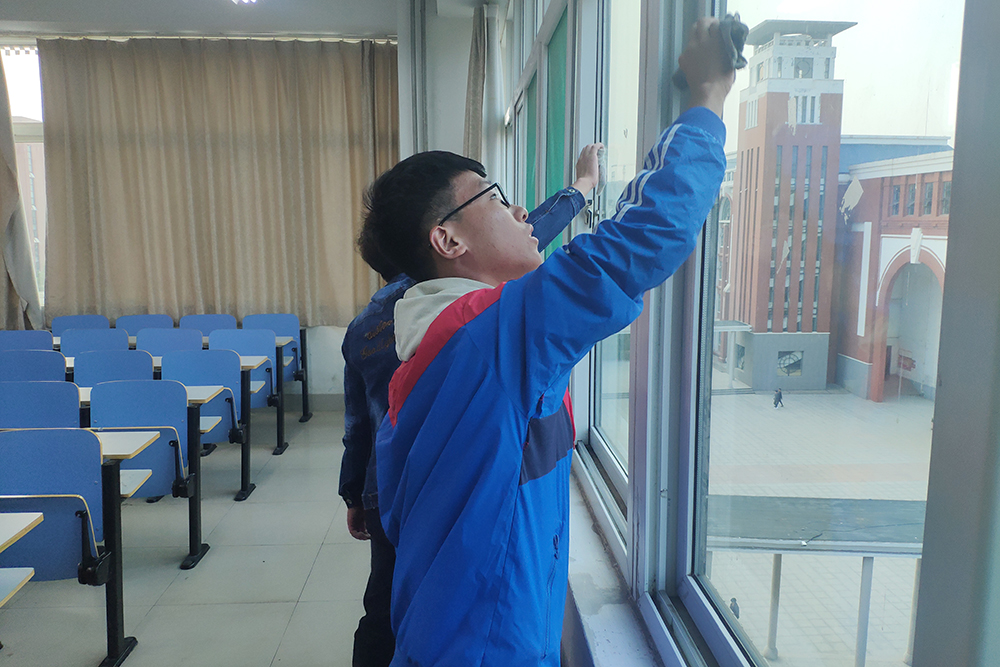 本次活动是对五号教学楼进行卫生清洁。活动中,同学们分工明确、互相配合,认真清扫教室的每一个角落,充分发扬不怕脏、不怕累的精神。经过近一个小时的义务劳动,教室内焕然一新。看着打扫干净的教室,一位参加义务劳动同学表示:作为一名大一新生,我们要树立主人翁意识和尊重他人劳动的责任意识,为创建整洁、文明、和谐的校园环境贡献自己的力量。