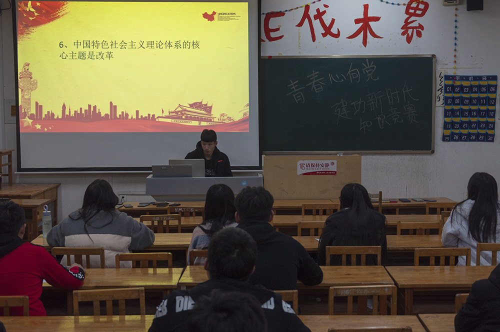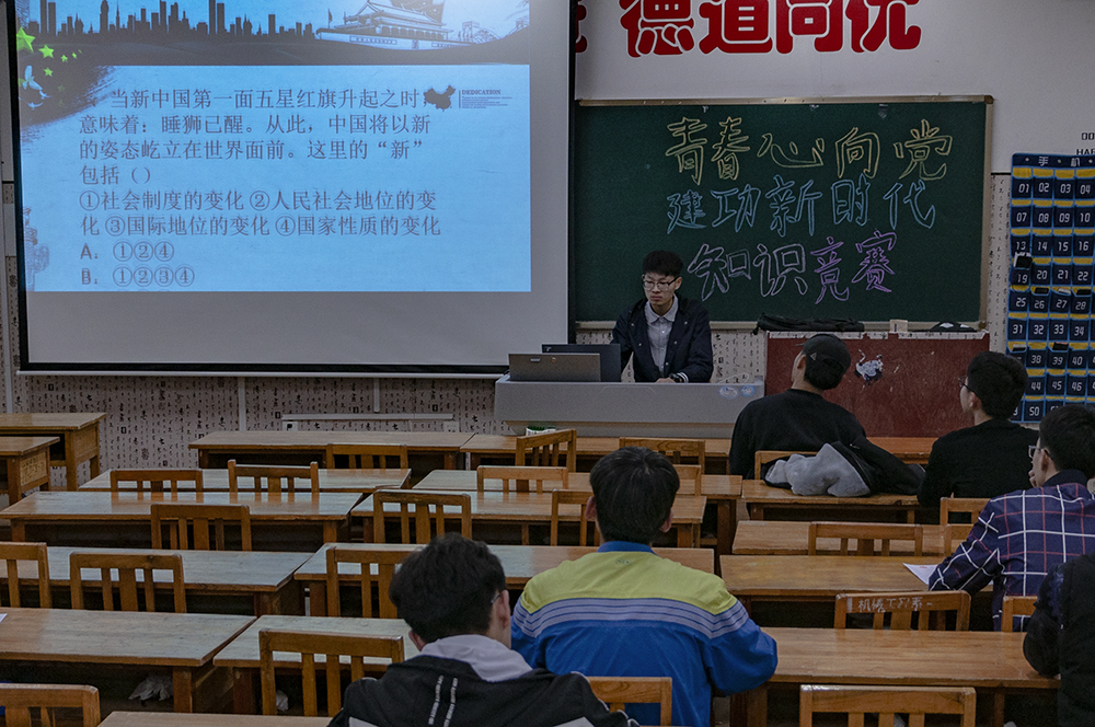 竞赛中,选手们集中坐在台下,对荧幕上的随机出现的竞赛题目进行书面作答。整个过程中教室内极为安静,只能听见同学们书写的“刷刷”声,比赛时间不长,但每位选手都在这短暂的时间里用尽自己的全部思绪对题目进行一一作答。通过本次竞赛,同学们纷纷表示加深了对习近平新时代中国特色社会主义思想的理解,提高了责任意识和担当意识,增强了历史使命感,在今后的日子里要更加积极的响应组织的号召,团结一心,并肩向前。