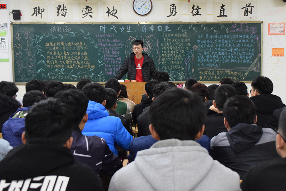 “爱心班会”促友谊,真情喊话送情谊。各班开展“把握正确方向,向阳自信成长”主题班会,带领大家了解“女生节”的来源、发展及意义,引导女生关注心理健康状况,提升心理健康品质,展示女大学生青春靓丽、积极向上的健康形象。供电1832班朱欣欣说:“这是我过的第一个女生节,也是来山职的第一年,在这一次别开生面的节日中,我感受到的是校园本身的文化传统和人文精神,热闹又不乏贴心的活动给我强烈的认同感和归属感,非常感谢大家给我们提供展现风采的机会。”