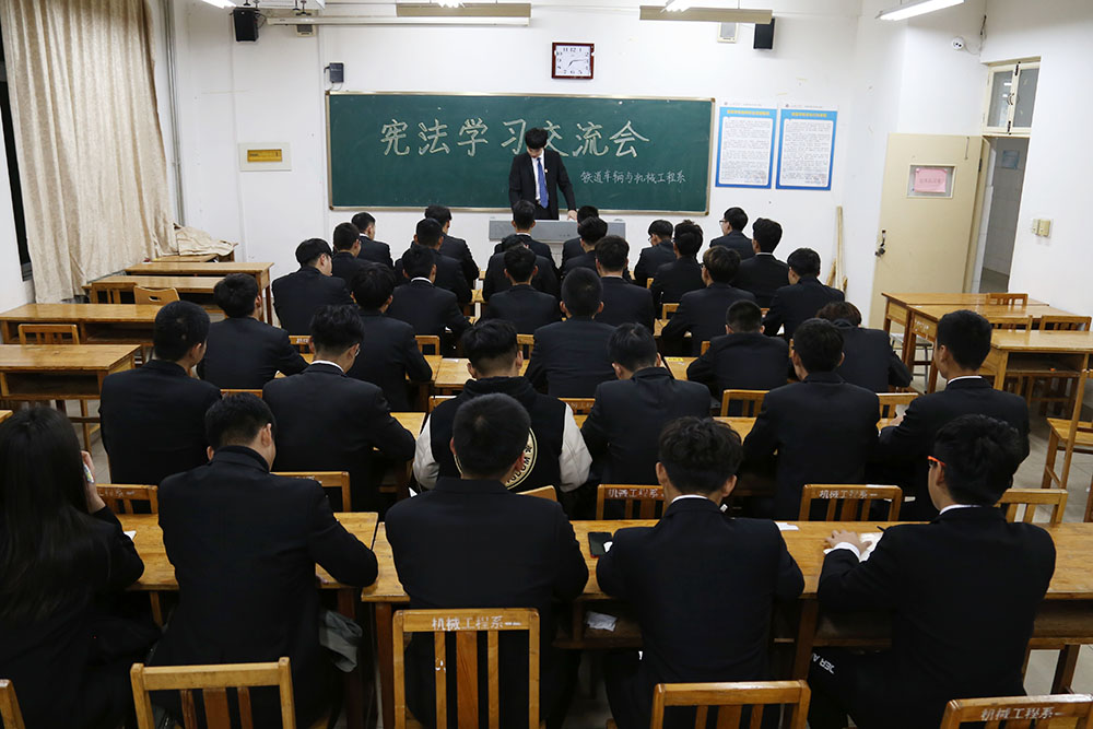 为更好地学习宪法精神,凝聚法治力量,培养学生知法、懂法、用法的意识,12月16日,铁道车辆与机械工程系组织开展宪法学习活动。