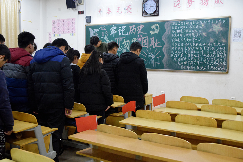 12月13日,是第五个国家公祭日。铁道供电与电气工程系开展了“勿忘国耻,珍爱和平”主题班会。