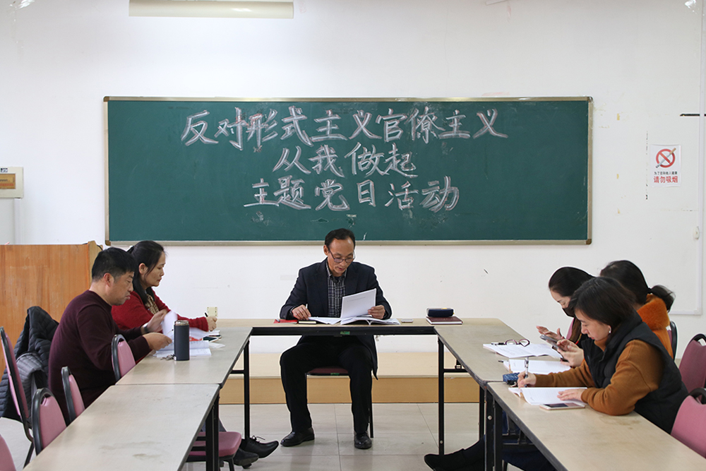 郭忠相带领教工党支部党员学习了习近平总书记解读《形式主义、官僚主义新表现值得警惕》一文中所作的指示。郭忠相强调,作为党员,我们都肩负着发挥党员先锋模范作用的重任,在日常生活中,一定要摒弃不良作风;在工作当中,务必要反对形式主义、官僚主义,扎实做好本职工作,身体力行,做好表率,在作风问题上严格到底。