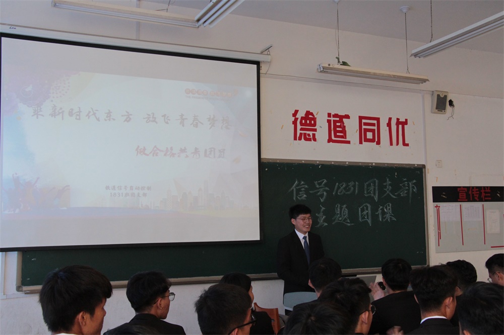 近日,铁道信号与信息工程系开展了“乘新时代东风,放飞青春梦想”主题团课,辅导员张迎伟老师出席活动。
