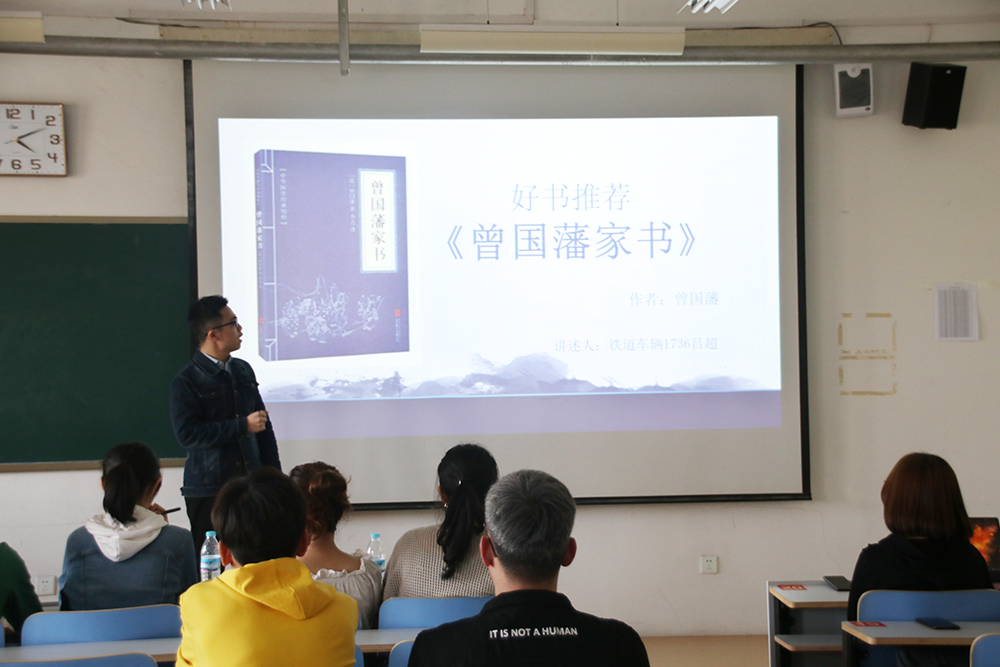 4月24日,铁道车辆与机械工程系举办朗读者暨优秀书目导读比赛。比赛中,有的同学介绍从《平凡的世界》中读出了孙少安和孙少平等那些为生活默默承受着人生苦难的人们不甘为命运所摆布的反抗,有的同学通过叙述《芒果街上的小屋》故事的情节使观众明白名人生的路是自己探索出来的道理,还有的同学用《你要去相信,没有到不了的明天》告诫大家珍惜当下时光做好现在的自己。参赛选手用不同的风格和形式抒发出自己对书籍的热爱,观众在台下认真地聆听,比赛现场不时传来一阵阵激烈的掌声。此次活动的开展,提高了大家的阅读兴趣,营造了勤奋读书、努力学习、奋发向上的班级学习氛围。