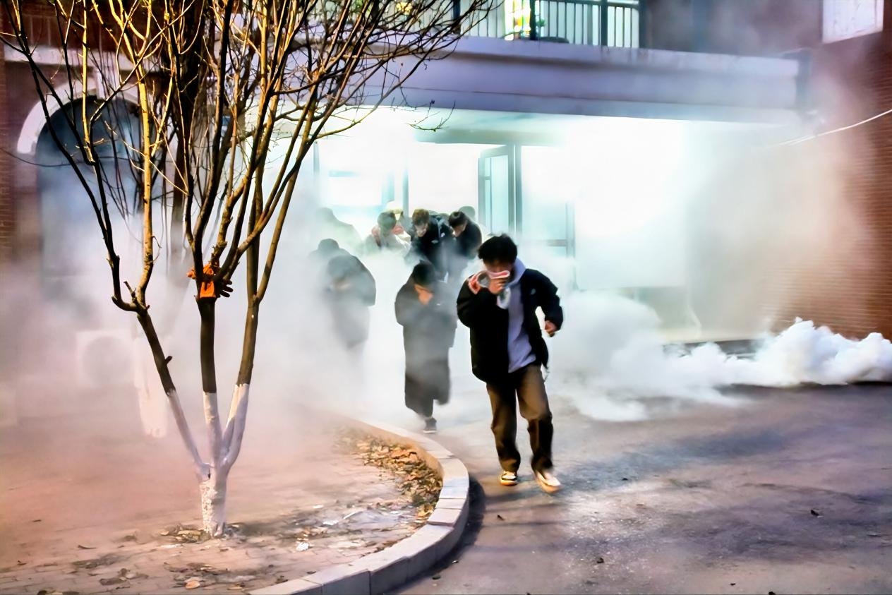 当晚,随着警报声响起,演练正式开始。书院师生们迅速响应,严格按照学校要求以及书院制定的疏散预案有序撤离。公寓楼各楼道疏散负责人认真履行职责,积极引导同学们安全疏散,疏散过程中提醒学生保持沉着、冷静,牢记“弯腰、低头、捂口鼻”的逃生要点,并指引同学们快速、有序地抵达指定集合地点。