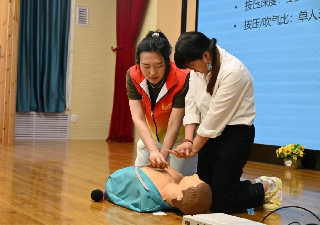 在实际操作环节,曹乐天借助心肺复苏模拟人等工具,对幼儿园教师展开一对一精准指导,帮助每位教师掌握急救技能,增强在突发状况下实施现场救护的能力。