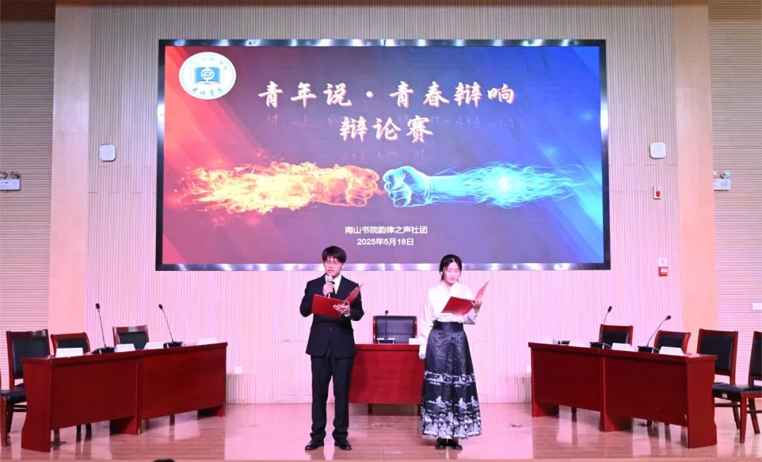 为丰富学生课余生活,增强逻辑思维能力,5月18日,南山书院“青年说•青春辩响”辩论赛在图书行政楼东报告厅成功举办。逻辑爆破队、强风吹拂队、梦之泪伤队等六支队伍参加比赛。