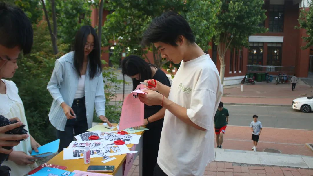 在活动现场,一张张小桌上摆满了精心制作的拼贴诗,“云程发轫,万里可期”“且听风吟”传递着美好祝福与心灵慰藉,同学们或俯身挑选、或提笔创作,在文字与色彩间抒发内心情绪,汲取温暖力量。在艺术创作区域,同学们创作一幅幅情绪编织画,大家依据自己对情绪的理解,通过线条、色彩、形状进行抽象或具象创作,将抽象的情绪转化为视觉画面,在经过裁剪、拼接后呈现出风格各异的色彩作品。在心灵海龟汤活动中,同学们充分发挥自己的想象,积极参与讨论,踊跃向主持人提问,发表自己的看法,大家被故事深深打动。