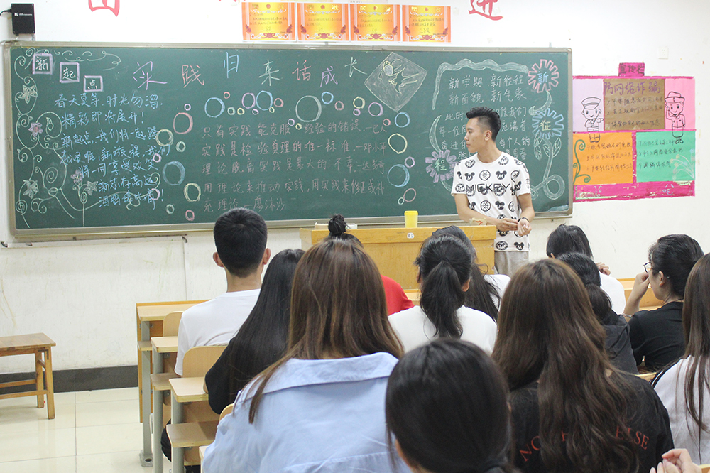 交管1731班交流了假期实践经验,提出“多走、多看、多做”的想法与建议;城轨交管1732班展示了同学们在社会实践中的所见所闻所得,气氛热烈;物流1731班从实践的意义着手,用理论和行动证明了“实践出真知”这一真理;交管1733班则以“有其言无其行,君子之耻”等名言警句点明了实践的重要性。