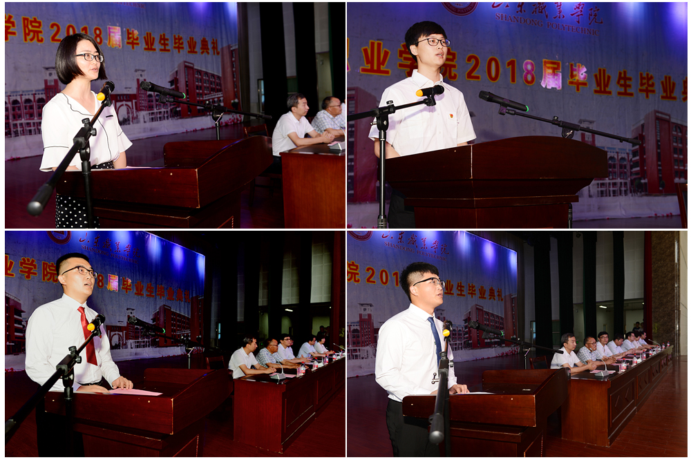 建筑工程技术专业1532班马良驹代表全体毕业生发言,感谢学院和老师的辛勤培育,感谢同窗好友的陪伴与帮助,表示在今后的人生征程中,将不忘初心、牢记教诲,用忠诚和勤奋创造出更加优异的成绩,为母校争光添彩。