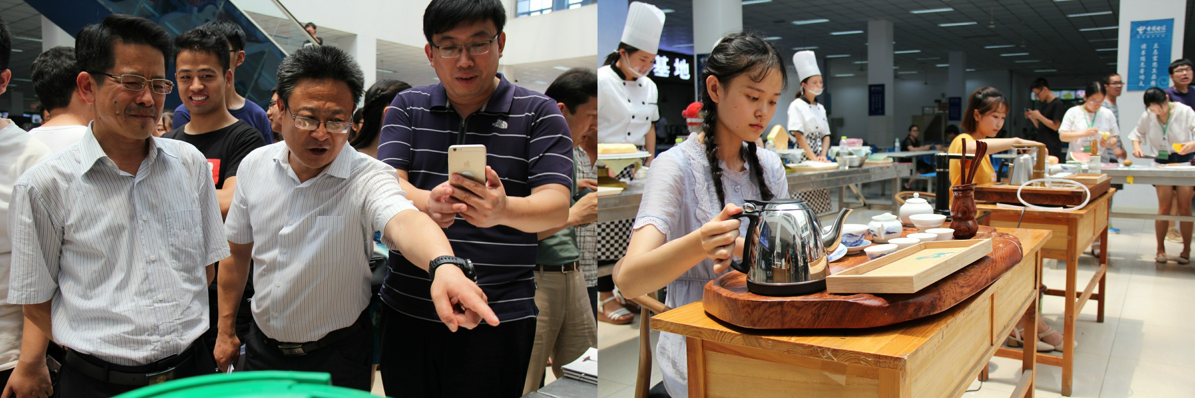 6月21日中午,我院第九届食品文化周系列活动持续进行中,学院院长秦河、学生工作处处长兼团委书记王伟、生物工程系党总支书记王广勇来到活动现场。