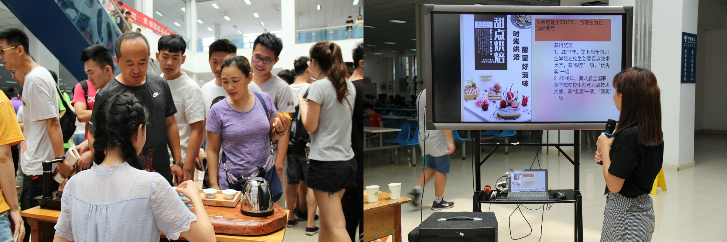 今天活动的主题是“秀技能、展风采”,生物工程系学生现场进行了蛋糕裱花、水果拼盘制作、茶艺表演等技能展示,活动现场气氛热烈,选手们尽情发挥创意,精雕细琢。他们或切、或拼忙得不亦乐乎。蛋糕、奶油、西瓜、苹果、芒果、香蕉等各种食材,在选手们的创意下,拼放成各种图案,作品色彩艳丽、精美绝伦。同学们细心谨慎、严谨规范的操作,让一件件精美的创意作品展示在师生眼前。优美的乐曲、美轮美奂的表演,让广大师生沉浸在美食美味的诱惑中,忍不住伸出手、张开嘴,享受美食的盛宴。