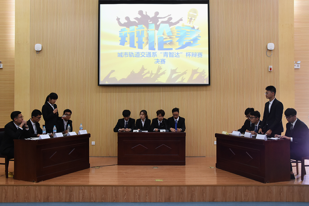 为丰富大学生活,培养团队精神,锻炼同学们的思维表达能力,5月23日,城市轨道交通系举行"青智达"杯辩论赛决赛。系党总支书记郭忠相,辅导员武文玉老师、丛树胜老师出席此次活动并担任评委。