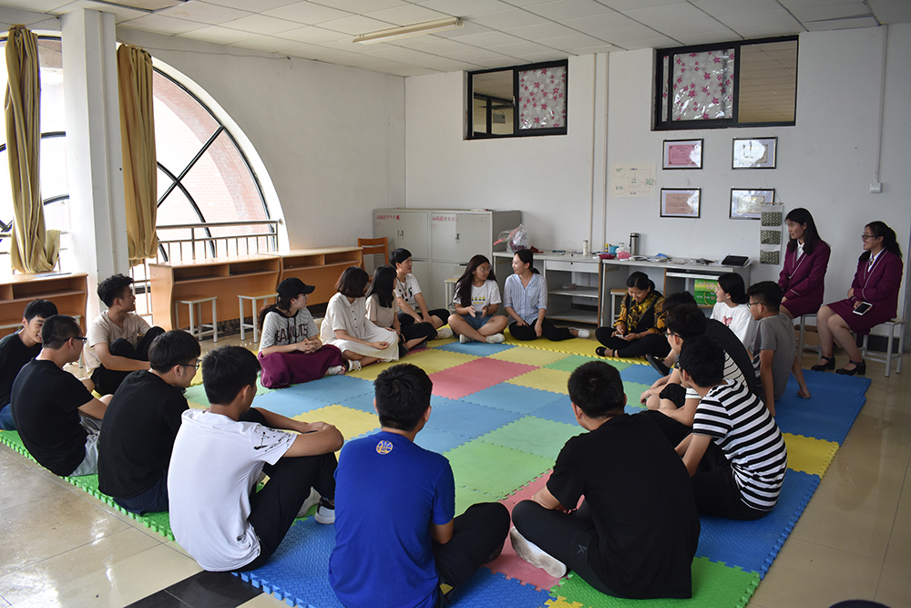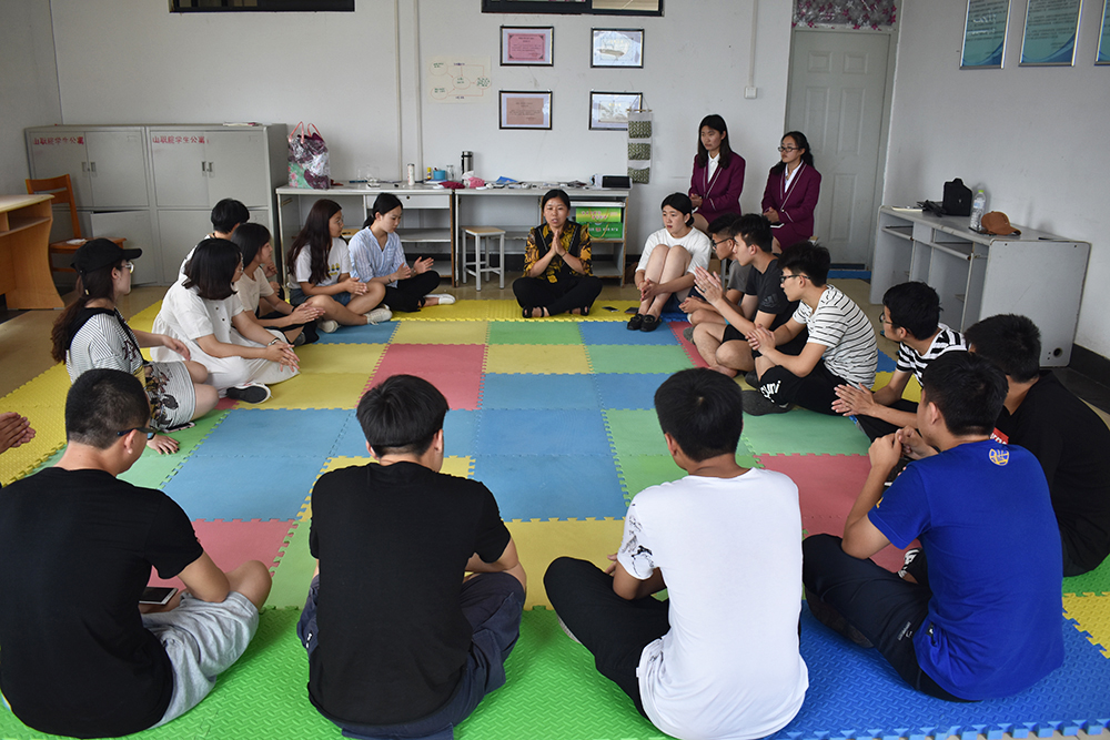 辅导员范秀菊老师主持团体辅导活动。首先,范老师以自身示范,让大家做自我介绍,解释名字的含义、解释QQ昵称或者微信昵称的含义。通过介绍,增进同学们之间了解,拉近了彼此间的距离。随后,范老师带领大家一起作“手口不一”游戏,即嘴里说的和手做的动作是不一致的,考察游戏者的反应能力和用心程度,增进同学们之间信任。在第三项“小鸡变大鸡”活动,同学们用心体会了小鸡一点点长大成为大鸡的过程和所经历的艰难,体会到美满的人生需要不断地的努力,需要不断奋进的勇气。范老师对游戏环节一一作出点评,加深了同学们的体会和感受。活动结束后,同学们纷纷交流自己的感受。