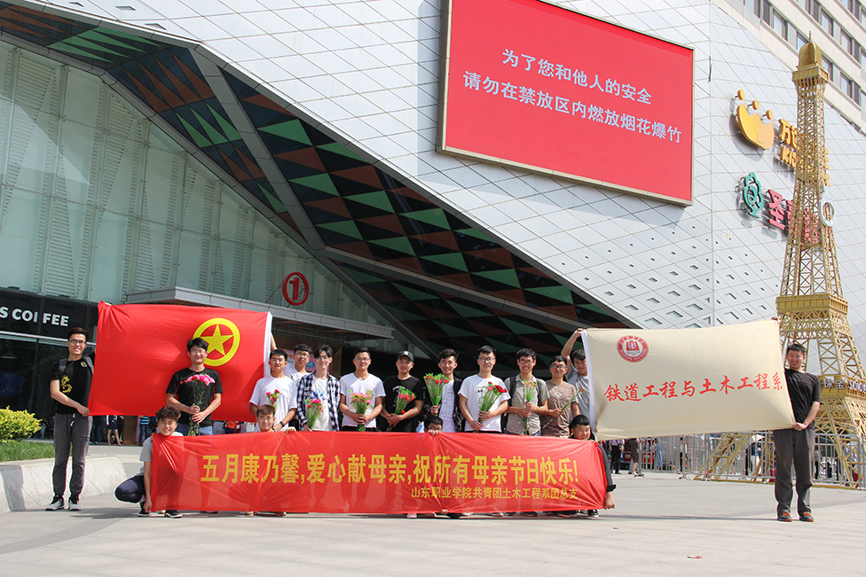 在母亲节来临之际,5月13日,铁道工程与土木工程系组织学生前往济南高新万达广场开展“五月康乃馨,爱心献母亲”主题活动。