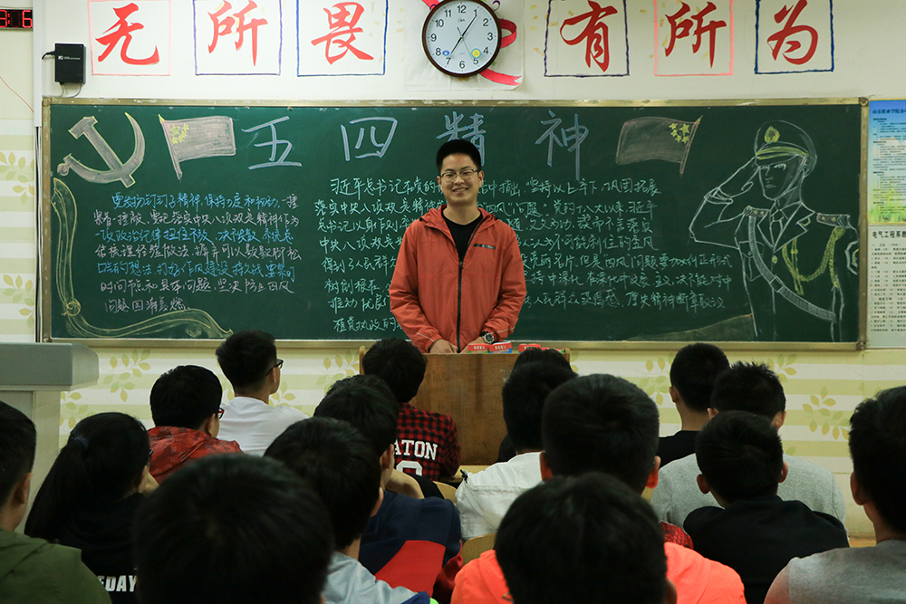 班会上,各班通过观看视频、幻灯片等方式学习习近平总书记在5月2日到北京大学考察中和在与北大师生座谈时发表的重要讲话精神,了解了五四运动到中国特色社会主义进入新时代的伟大飞跃、习近平总书记对新时代青年提出的要求以及新时代青年的学习榜样宋玺的事迹等内容。同学们纷纷表示,幸福是奋斗出来的,只有奋斗的人生才是幸福的人生。我们要牢记习近平总书记的谆谆教诲与殷切期盼,坚定信仰、砥砺品德,求真学问、练真本领,知行合一、苦干实干, 珍惜时光、勤奋学习,努力成长为有理想、有本领、有担当的社会主义建设者和接班人,为全面建成小康社会、全面建设社会主义现代化强国而努力奋斗,为实现中华民族伟大复兴中国梦贡献智慧和力量。