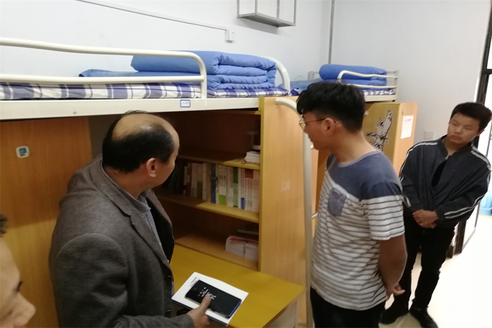 通过检查,老师们将学生未引起注意的安全隐患一一指出,并对学生宿舍中存在的问题进行了调整。卫生方面,郭书记提出了高标准严要求,要求营造一个良好的宿舍环境,同时帮助同学们对卫生检查不合格地方进行整改。
