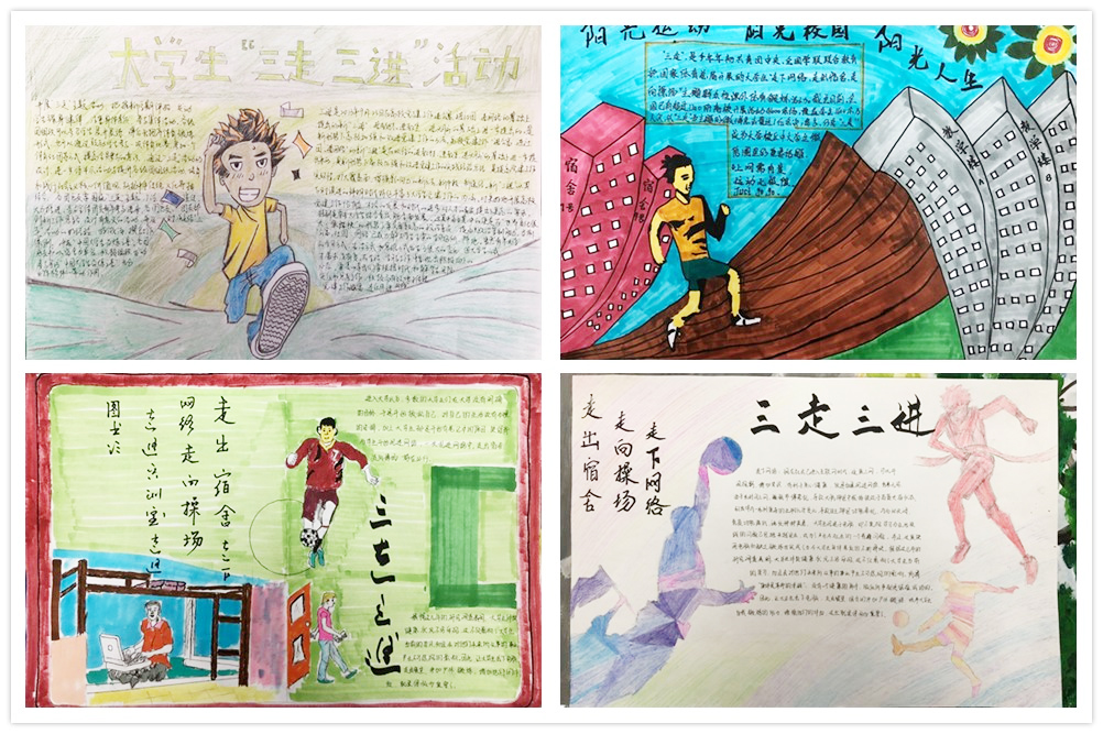 线上线下搭阵地。该系充分发挥线上线下协同“作战”优势,真正让“三走三进”活动理念深入学生心中。线上通过官方微信推出专题微刊阐释“三走三进”活动的精神与意义,官博发出话题与参与者进行在线互动,为“三走三进”系列活动进行预热。线下通过举办主题班会和手抄报大赛,引导广大青年学子走下网络、走出宿舍、走向操场,积极开展户外活动,锻炼体能意志,追寻青春梦想。