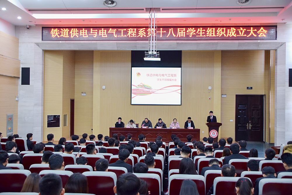 1月3日,铁道供电与电气工程系召开第十八届学生组织成立大会,系党总支书记刘红,学工办主任李亚飞,团总支书记范媛媛,辅导员冯国英、李井铭出席会议,2016级、2017级全体学生干部及2015级学生代表参加大会。