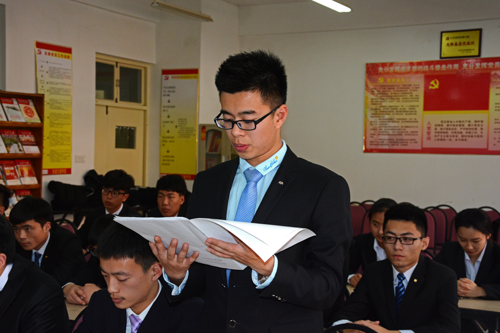 大会在庄严的《国歌》中拉开帷幕。李志等8位同志分别宣读了入党志愿书,阐述了对党的认识及入党动机,介绍了自己在工作和生活中的表现。入党介绍人分别对发展对象的培养过程、每个人的现实表现、在学习、工作、实践活动等方面先锋作用的发挥进行评价介绍。党支部宣读对发展对象的政审、考察情况的报告。会上,党员们还对发展对象进行党的理论知识的提问考察。经与会党员的充分讨论、投票表决,一致同意吸收李志等8位同志为预备党员。大会在高亢的《国际歌》中圆满结束。