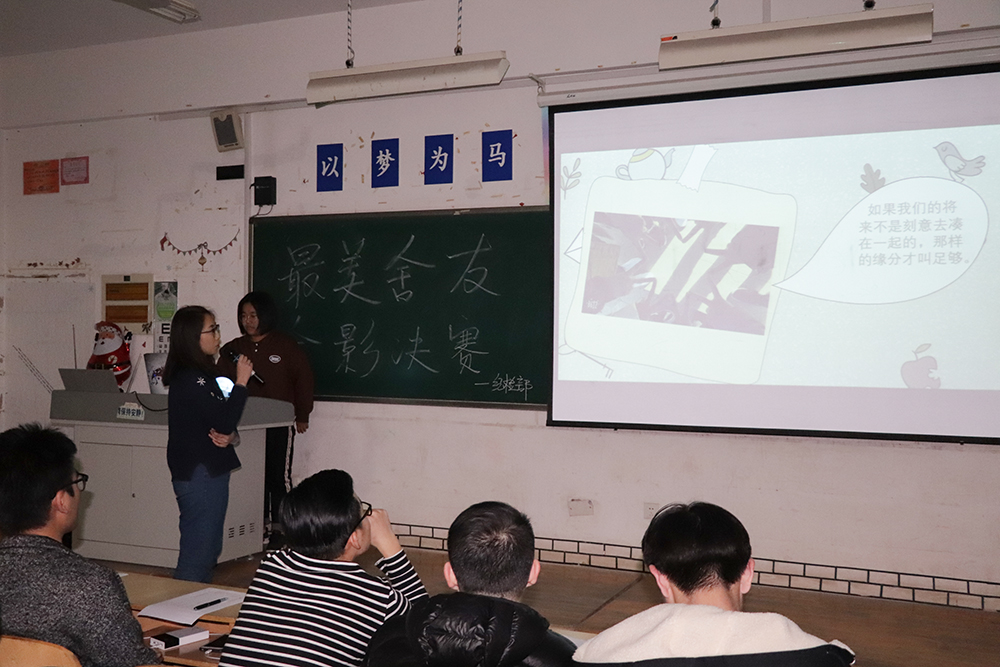 “我是8123宿舍代表,我的舍友们羞涩又不失开放,内敛又不失阳光,与他们的在一起的点点滴滴将会是我大学生活中最美好的回忆。”“这张合影是我们宿舍第一次出去聚会在餐厅门口照的,那时刚军训完的我们是真黑啊,美颜也不好使呢。”一张张照片,一句句话语,各个宿舍代表用朴实、真诚的语言诉说着自己与舍友的精彩瞬间,讲述着照片背后的动人故事。经过几轮精彩讲解,8123宿舍获得此次最美舍友合影比赛第一名,9120宿舍、9201宿舍分获二、三名。