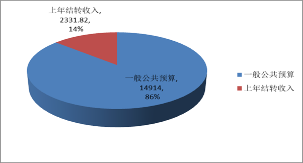 2019年财政拨款收入预算为17245.82万元,其中:一般公共预算14914.00万元,占86 %;上年结转收入2331.82万元,占14%。