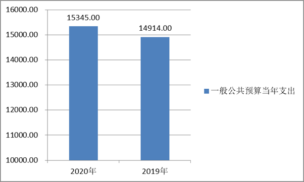 2020年一般公共预算当年支出预算为15345.00万元,比上年增长2.89 %,其中:教育支出15345.00万元,占100.00%。