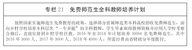 (八)实施精准化教育扶贫。对贫困人口实施教育精准扶贫,确保贫困学生真正受益。着力推进贫困地区义务教育薄弱学校改造计划、贫困农村学前教育普及计划、乡村教师支持计划,推动建设城乡学校结对帮扶和高校科技扶贫,构建完善建档立卡贫困家庭学生资助体系、农村留守儿童关爱服务体系、职业教育精准扶贫支持体系。继续实施省属重点高校招收农村本科生专项计划,实施重点高职招收农村高职生专项计划。